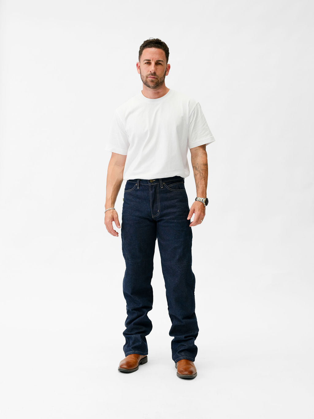 - Heavy duty 14 oz denim for durability
